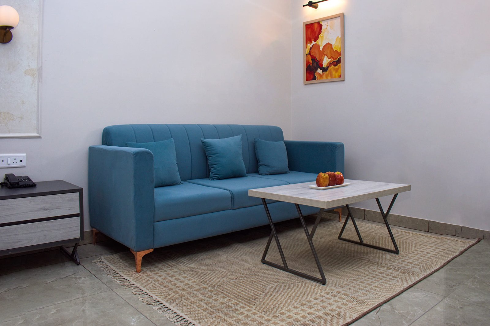 Urban Suites Jaipur offers comfortable sitting area with plush decor and a welcoming vibe for business travelers.